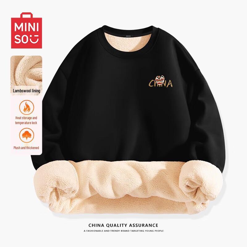 MINISO Men's Plush-Lined Kung Fu Lion Graphic Sweatshirt