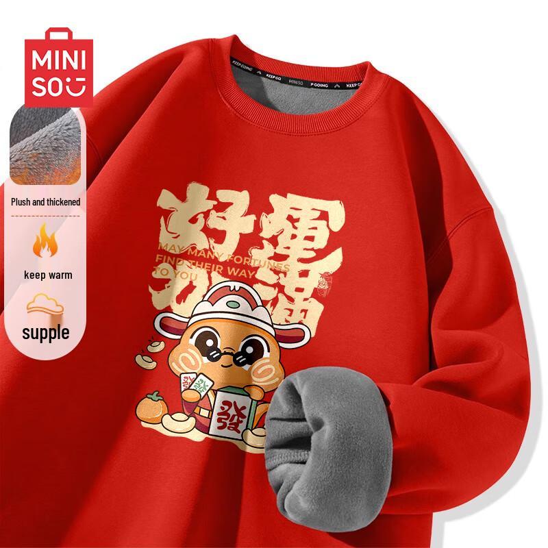 MINISO Men's 2025 Year of the Snake Lucky Red Fleece Hoodie