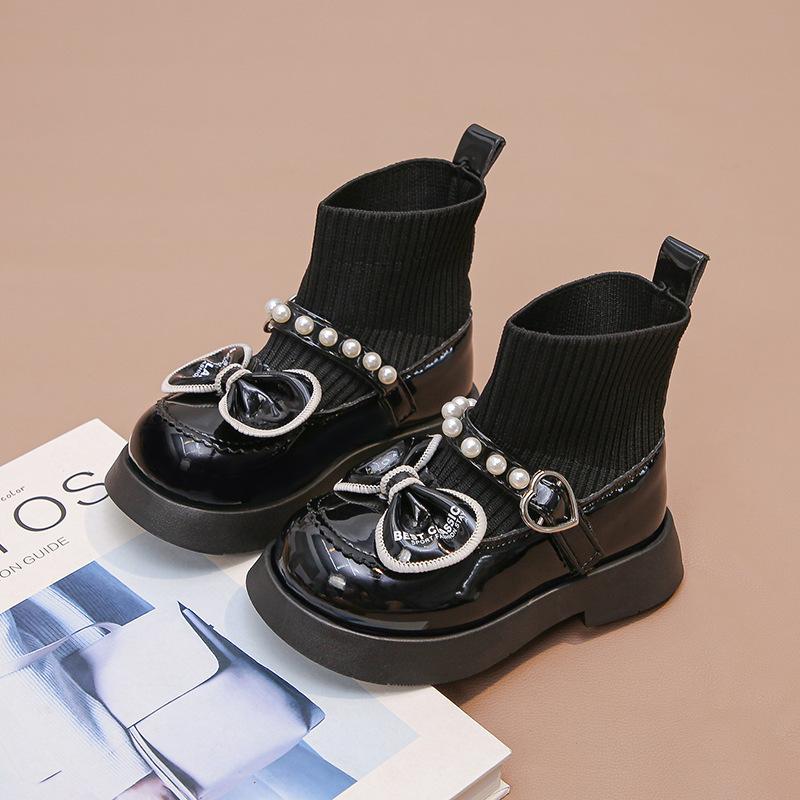Girls Boots 2025 Autumn and Winter New Short Boots Martin Boots Children's Socks Boots Girls Single Boots Velvet Pearl Princess Shoes