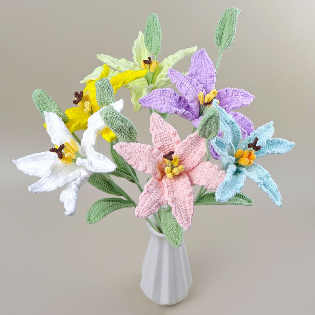 2025 Lily Crochet Flowers Creative Lily Crochet Flower Bouquet Kintted Plant Wedding Decor Table Home Decor Gift