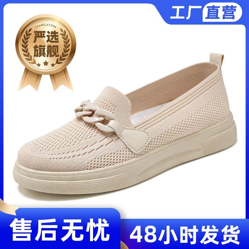 Shoes Women's Casual Shoes Women's Shoes Comfortable Flying Knitting Shoes Shallow Mouth Single Shoes Flying Knitting Breathable Mesh Shoes