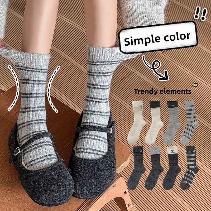 Women's Autumn and Winter Thickened Warm Double Collar Embroidered Wool Boneless Tube Pile Socks