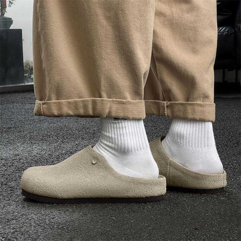 Boken Shoes Men's Foot Cover Summer Breathable Half Drag Outer Wear Leather Slippers 45370 Long Hair beige-Y