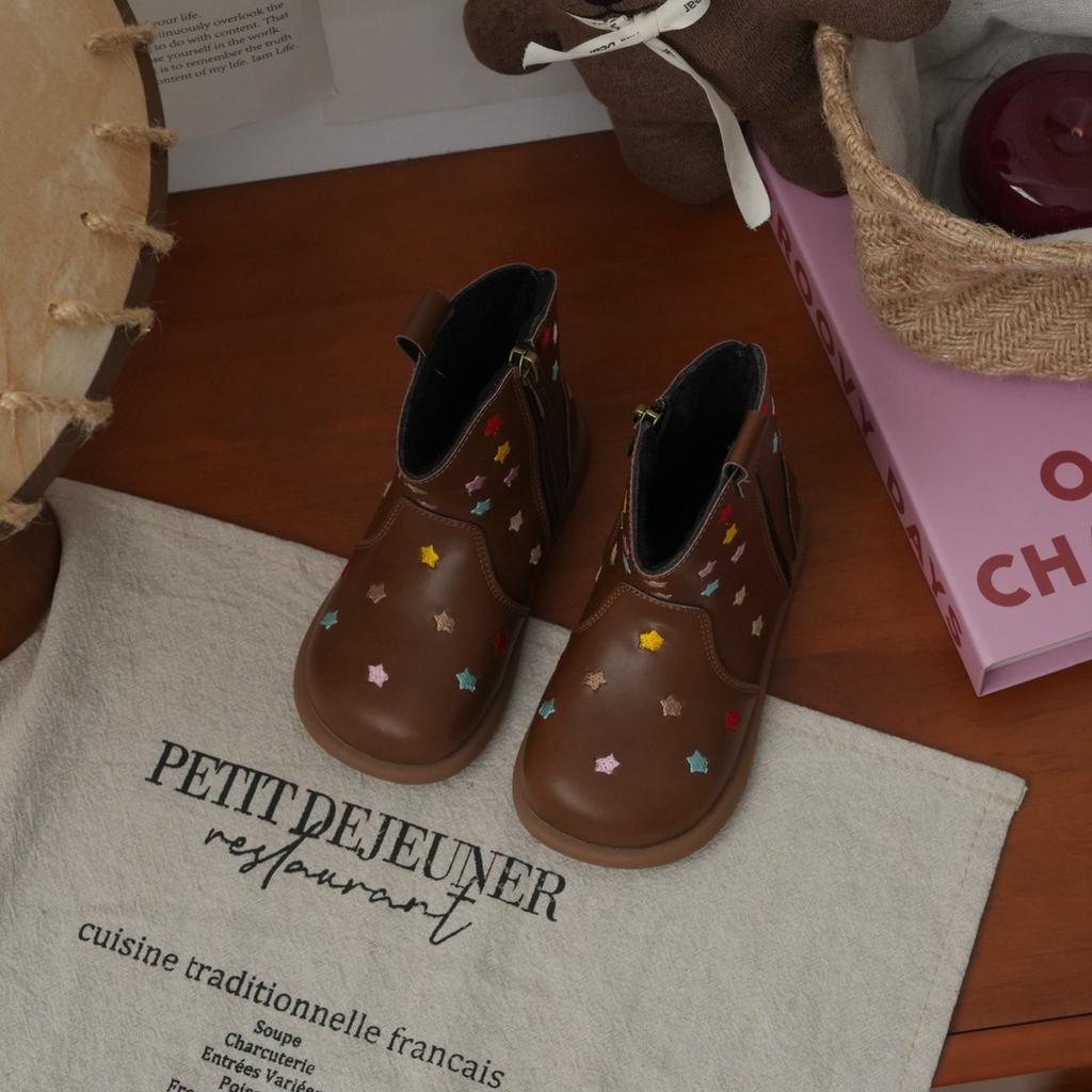 XSHX Retro "Miao Star" Children's Knight Boots Chelsea Leather Boots Boys and Girls Side Zipper 248089