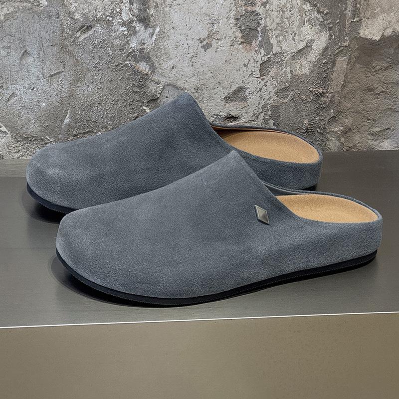 Retro Inner Heightening Bag Head Half Slippers Summer New Outer Wear Flat Bottom One Pedal Lazy 19987 gray-J