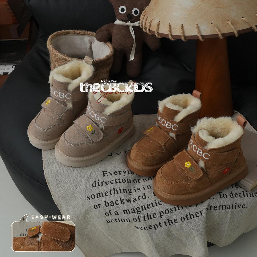 XSHX Retro "embroidered Wool Mouth" Children's Cold-proof Leather Snow Boots Winter Girls Velcro 249091