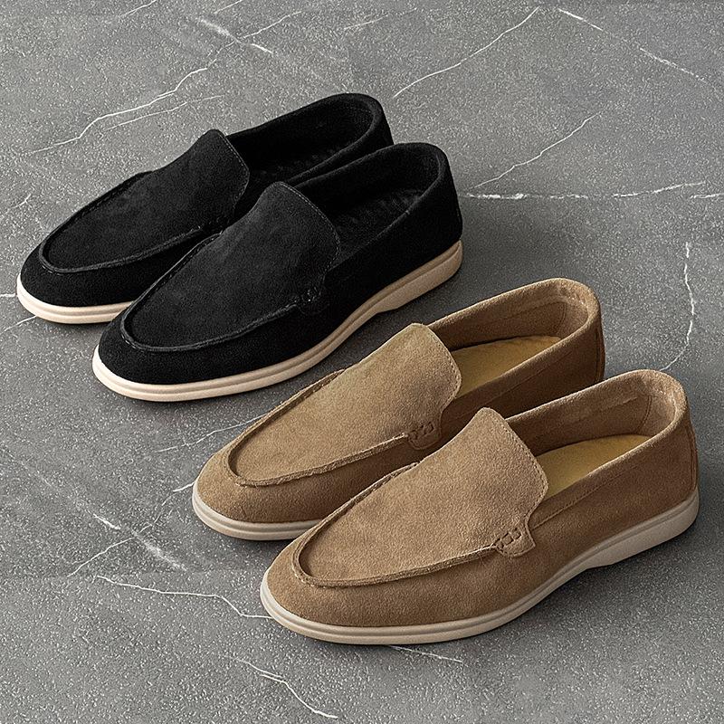 Lazy Soft-soled Comfortable Loafers Men's One-pedal Flat-soled Commuter Beanie Shoes 8253 Black, khaki-J