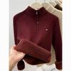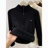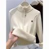 Autumn Winter Women's Thickened Stand Up Collar Sweater Half Open Collar Zipper Velvet Warm High Neck Pullover