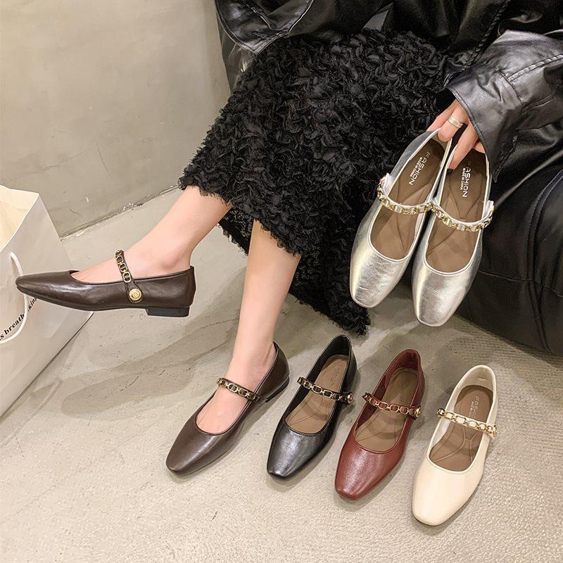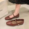 Retro Single Shoes Women's Light Mouth Buckle Heel French Mary Jane Shoes Fashion 2025 Low Square Head Autumn New Word