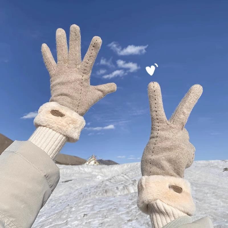 Gloves for Women Winter Warm Cycling and Driving Cold and Windproof Plus Velvet Cute Touch Screen Wool Hand Socks