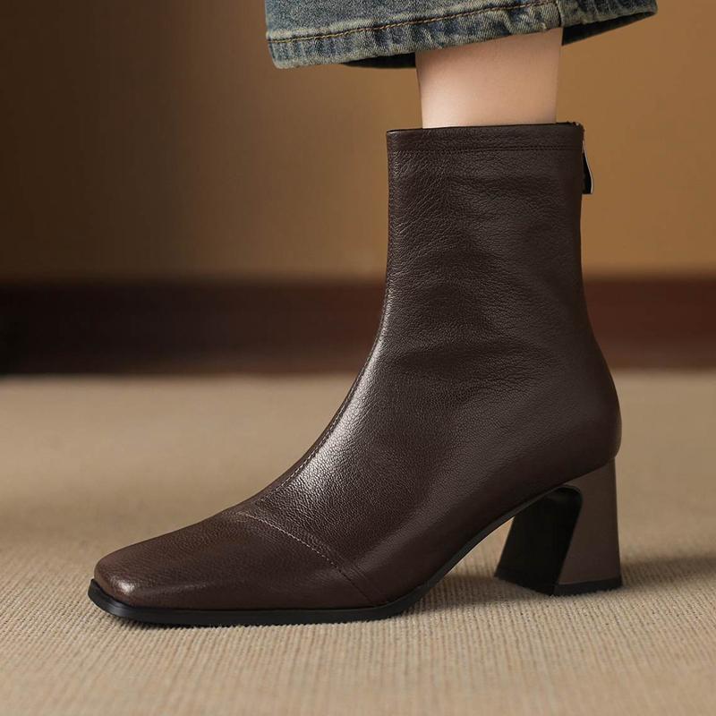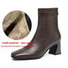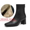 Krazing Pot Sheepskin Winter Square Toe Modern Boots Thick High Heels Zipper Women Ankle Boots