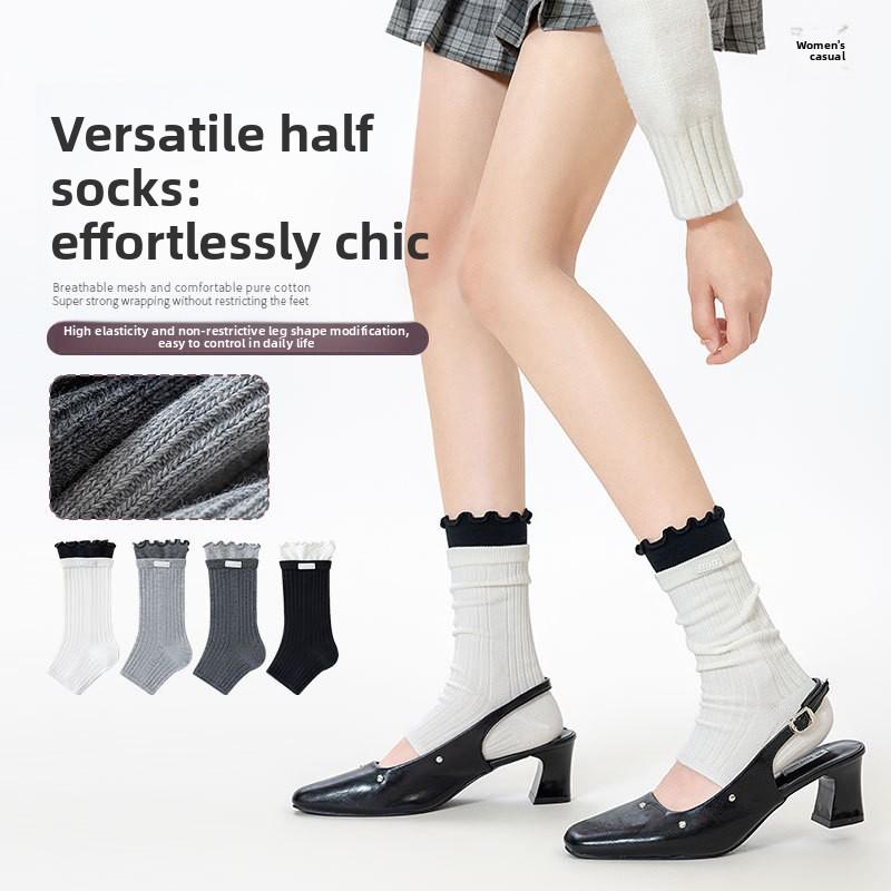 Ladies Spring and Autumn Ballets Wooden Ear Side Foot Long Cylinder Pile Cotton Socks