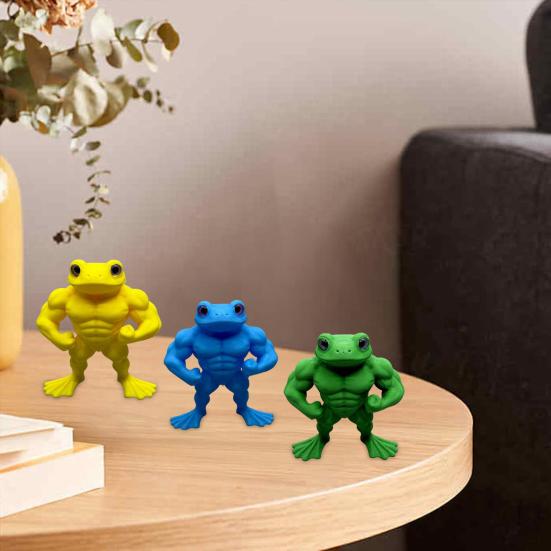 Funny Muscular Frog Design: This plastic frog ornament showcases a humorous take on fitness culture with its muscular physique. Utilizing advanced 3D printing technology, the statue boasts intricate details and a smooth finish, making it ideal for collectors.