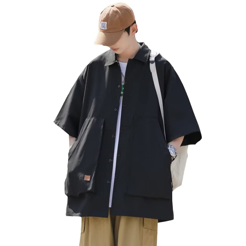 "Design": Excellent breathability, soft to the touch, and extremely comfortable to wear. With a large cargo-style pocket on the front, the unique design is also extremely practical. This stylish short-sleeved aloha shirt exudes a refreshing, mature look. The beautiful silhouette creates a cool image and a stylish feel.