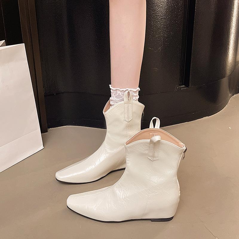 Small Square Head Short Boots In the Autumn of 2025, New Women's Boots, Fashionable European and American Style, Beautiful Color, Flat Bottom Inner H