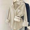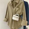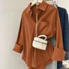Spring Autumn Polo-neck Solid Color Casual Fashion Cardigan Shirt Women Long Sleeve Simple All-match Blouse Top