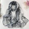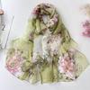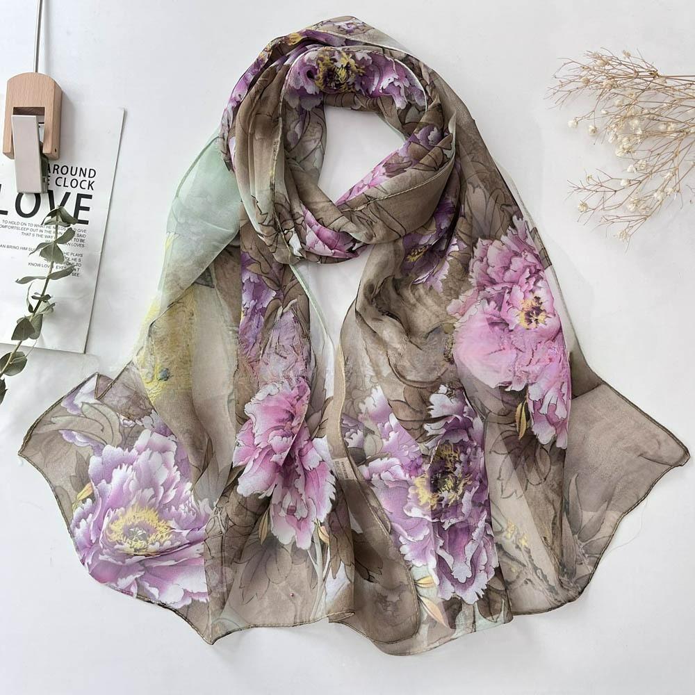 Summer Korean Version of The Season Silk Scarf Sunscreen Scarf Rich Peony Ladies Chiffon Long Silk Scarf Gauze Scarf