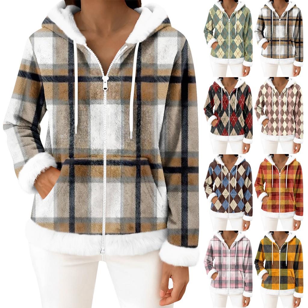 Women's Casual Fashion Long-Sleeved Zip-Up Fleece Hooded Cardigan