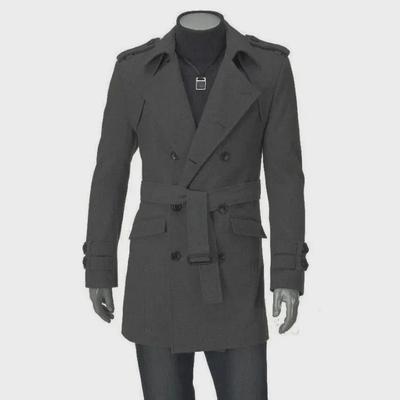 Men Long Woolen Coat Lapel Long Sleeve Solid Color Windbreaker Pockets Two-Button Placket Solid Color Mid-length Outwear