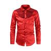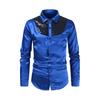 The modern lapel design adds a touch of style to this men's dress shirt, making it versatile to pair with different tie knot sizes. Crafted from silky fabric with sequin panels, this single-breasted shirt exudes a casual yet refined appeal. Its lightweight and slim-fit construction ensures comfort without compromising on style.