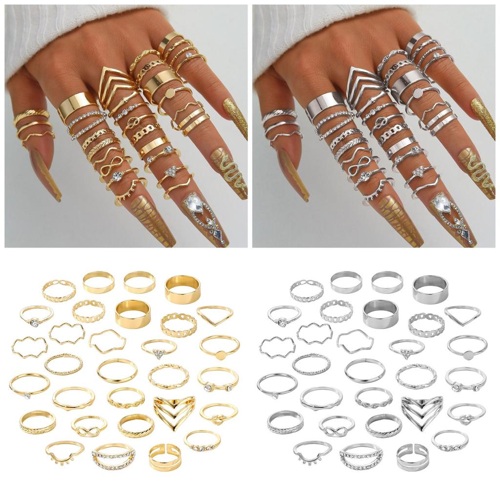 Silver/Gold Color Rings Set Elegant Stacking Geometric Finger Rings Jewelry for Women Daily Outfits Party Accessories