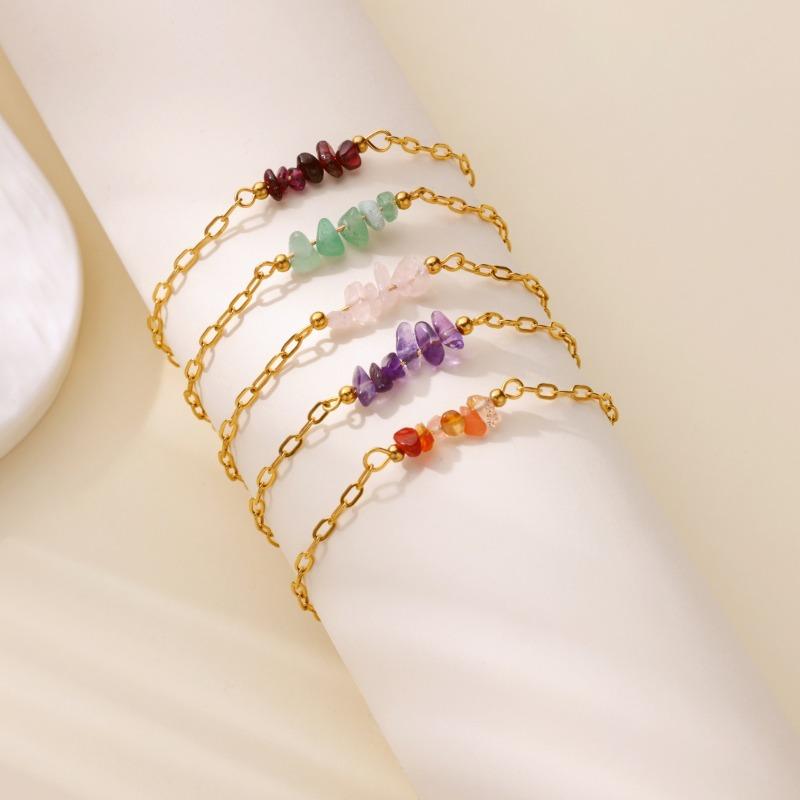 Bohemian Bracelet Women's Niche High-end Imitation Agate Irregular Gravel Summer Stainless Steel Bracelet