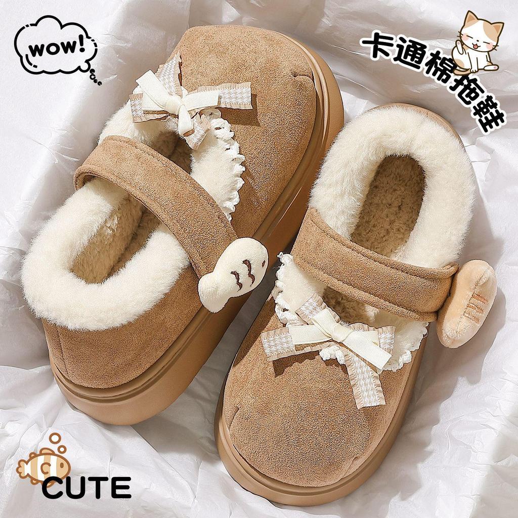 Women's Furry Non-Slip Cotton Slippers - Thick-Soled, Closed-Heel for Autumn & Winter