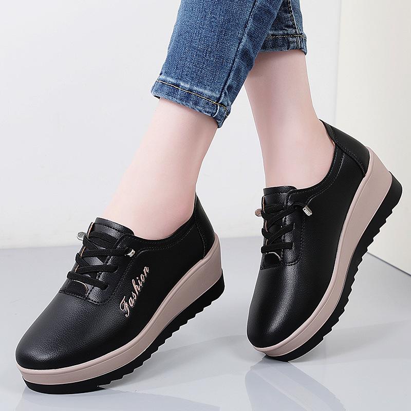 Autumn Women's Genuine Leather Non-Slip Platform Shoes - Thick-Soled, Comfortable, Lightweight, Casual