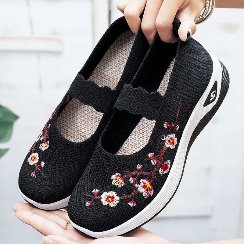 Discover the perfect blend of comfort and style with these slip-on shoes, designed specifically for women. Featuring a lightweight and casual design, these shoes are crafted with a durable nonwoven fiber upper material, offering flexibility and breathability. The unique embroidery print adds a touch of elegance, making them suitable for a variety of occasions. The PVC sole ensures excellent grip and support, making these shoes ideal for everyday wear. Enjoy effortless sophistication and practical comfort in every step.