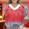 Christmas Day Girls Long Sleeve T Shirts Kids Girls' V-Neck Tee Christmas Print Long Sleeve Top