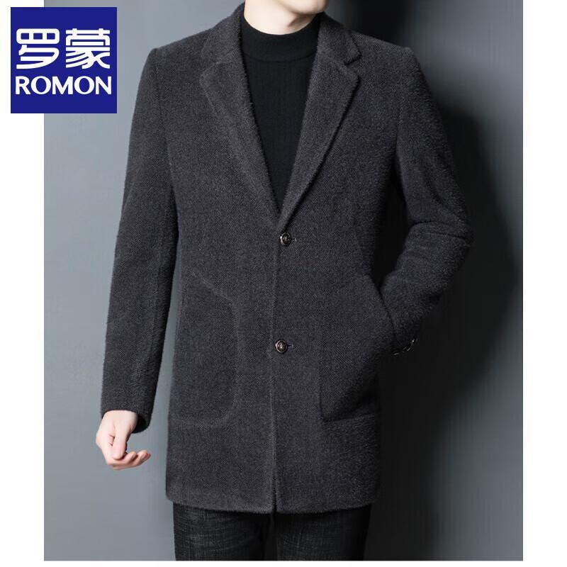 ROMON Men's Mid-Length Wool Blend Business Casual Coat