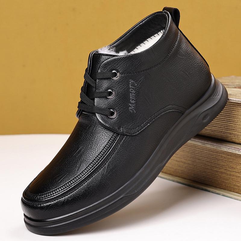 2025 Men's High-Top Leather Business Formal Casual Warm Cotton Shoes for Autumn/Winter