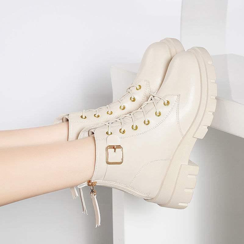 2025 Women's British-Style Martin Boots: Autumn/Winter, Trendy Korean Short Design with Thick Soles & Plush Lining for Versatile Student Look.