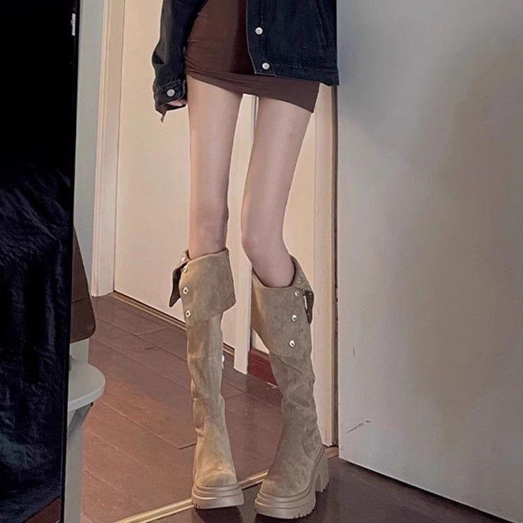 Petite Women’s Fold-Down Hidden Heel Over-the-Knee Boots – Myllard Autumn/Winter Thick-Soled Style