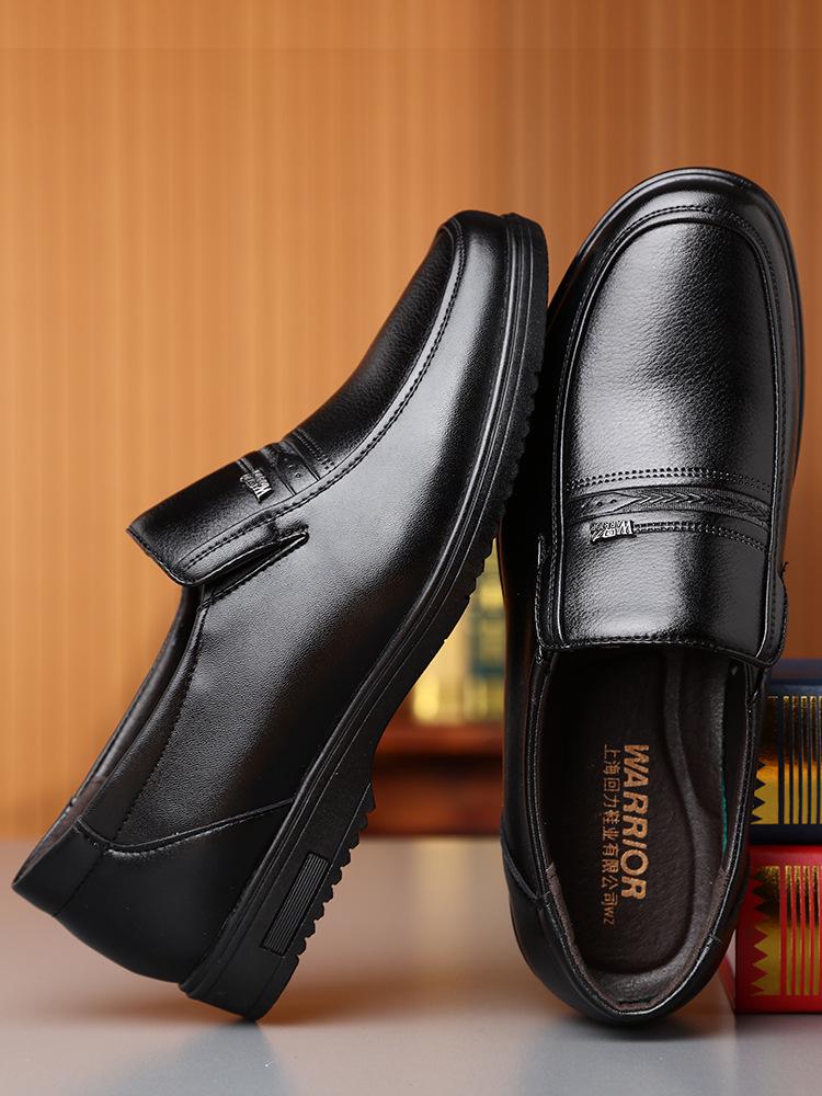 Warrior Men's Genuine Leather Slip-On Formal Shoes for Middle-Aged and Elderly - Non-Slip Casual Spring/Autumn Footwear