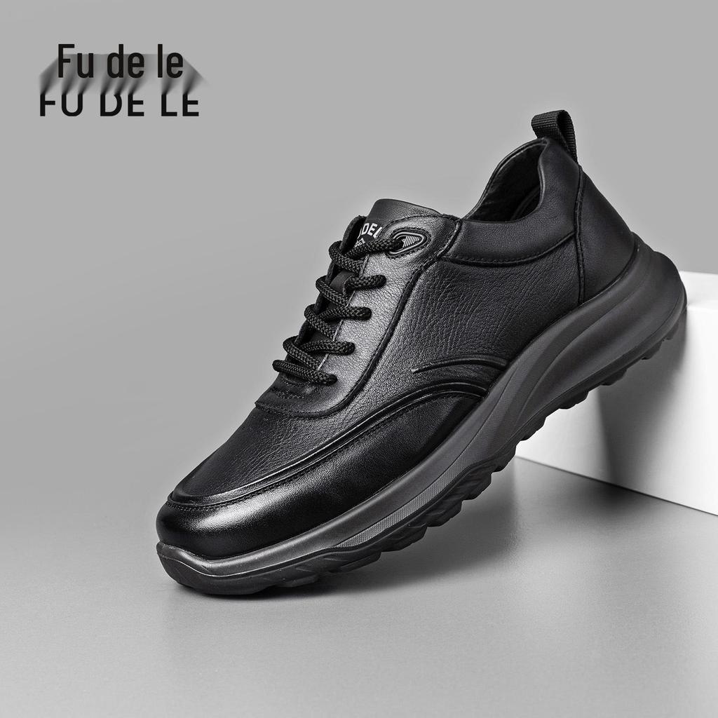 Fu De Le 2025 Men's Genuine Leather Non-Slip Dad Shoes - Soft Sole, Comfortable Cowhide Leather