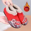 Women's Fleece-Lined Embroidered Cotton Shoes - Warm, Non-Slip, Ethnic Style for Middle-Aged and Elderly