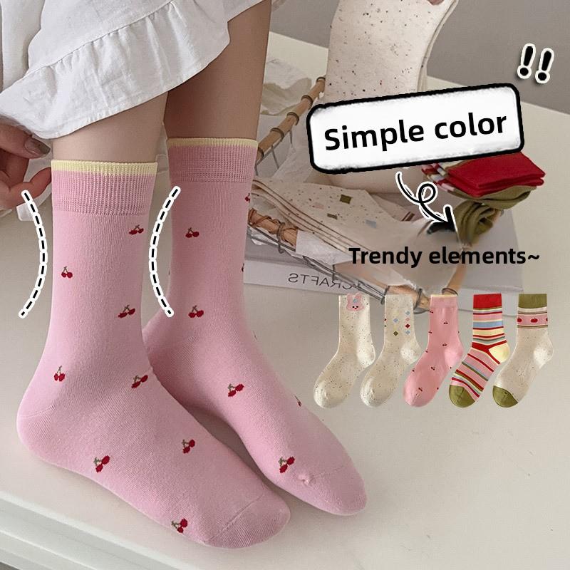 Polka Dot Yarn Boneless Socks for Women, Spring and Autumn Versatile Cartoon Mid-calf Socks, Sweat-absorbing and Odor-proof Boneless Long Socks