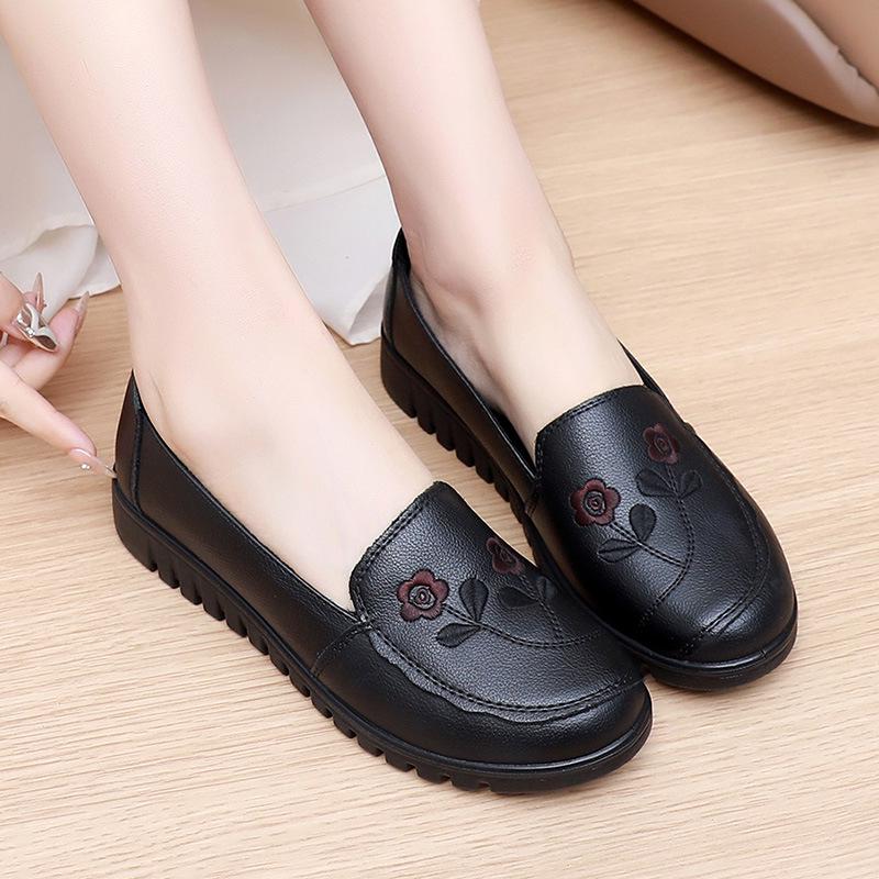 Ladies' Genuine Leather Loafers - Soft Sole Comfort Shoes for Spring & Autumn. Perfect for Middle-aged and Elderly Women.