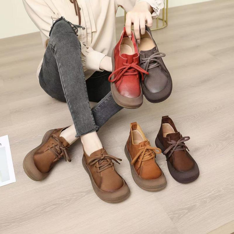 2025 Vintage Brown Ankle Boots: Soft Sole, Genuine Leather, Women's Thick Sole Martin Style