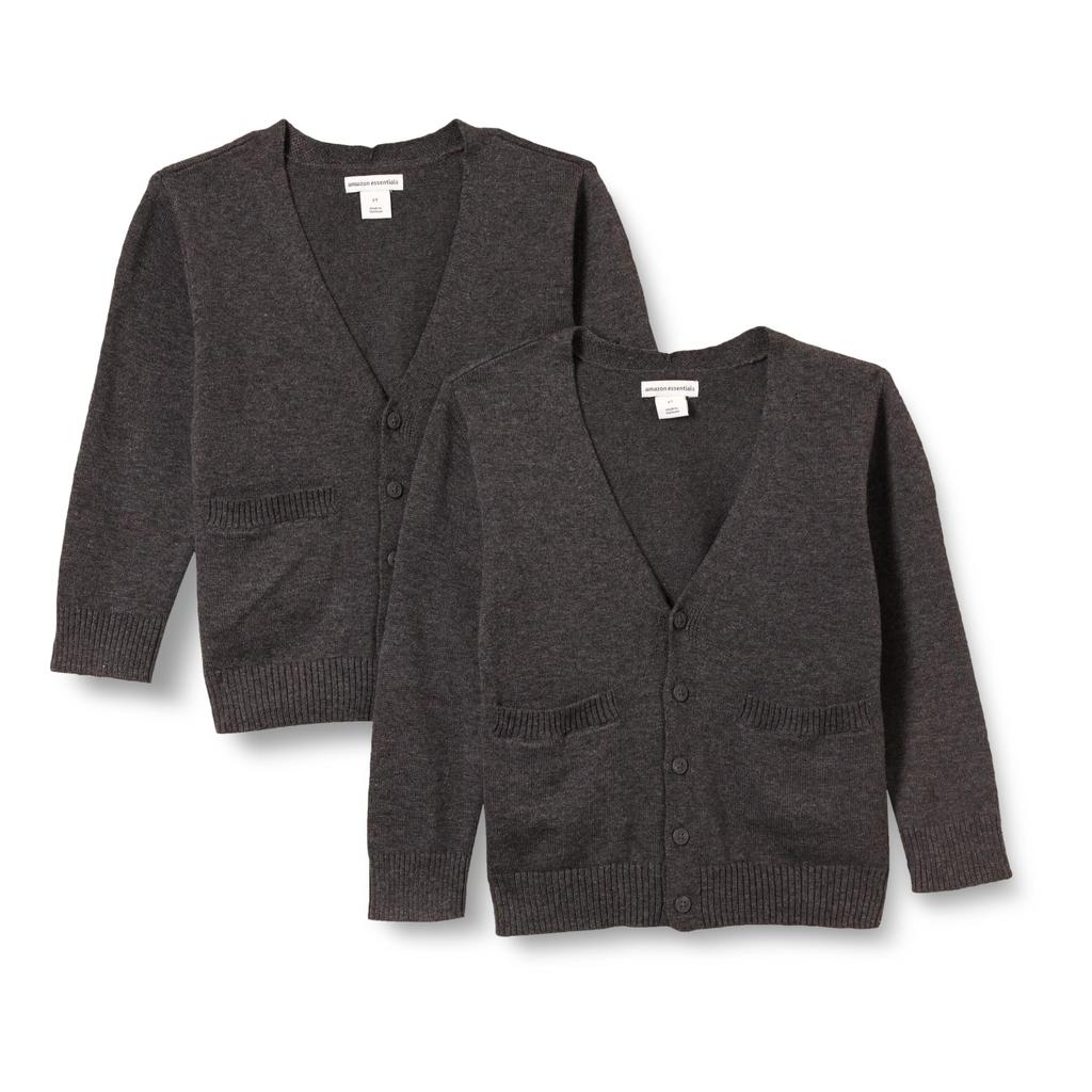 Amazon Essentials 2-Pack Knit Cardigans, Cotton, Toddler/Kids, Heather Charcoal, Size 95
