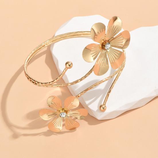 Enhance your outfit effortlessly with this versatile flower open bracelet. Crafted from high-quality metal, this stylish accessory adds a decorative touch to any look. Whether you're heading to work, a party, or a wedding, this bracelet is the perfect choice.
