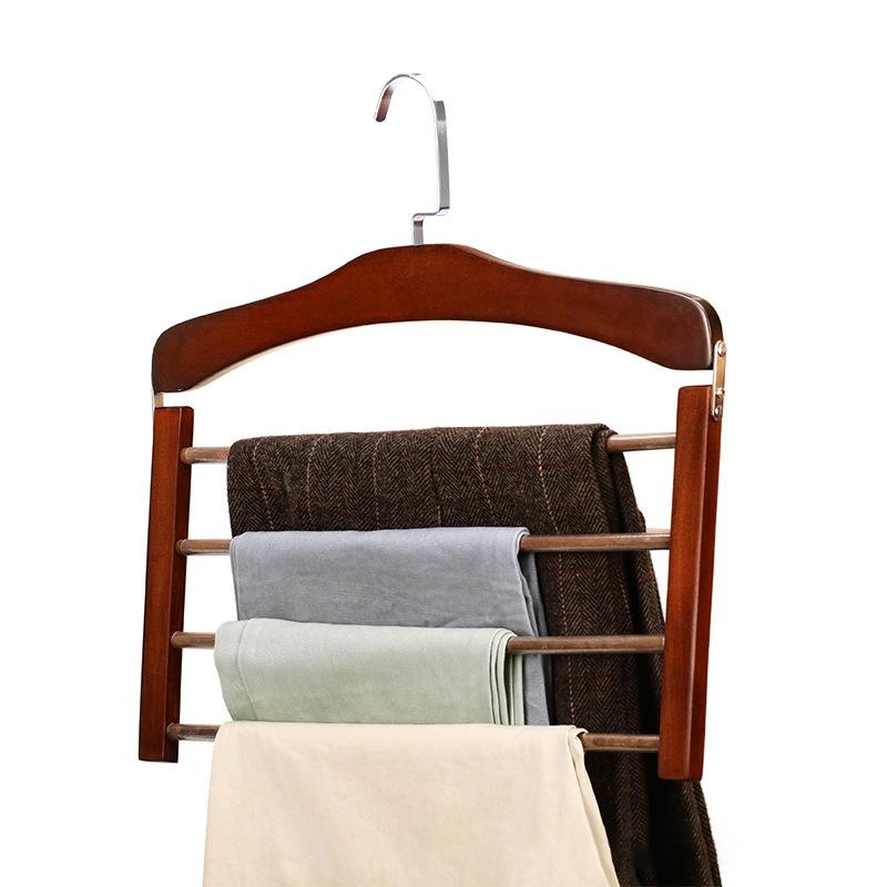 1Pc Premium Space-Saving Multi-Tier Wooden Pants Hanger - Durable Composite Wood Organizer For Ties, Scarves & More