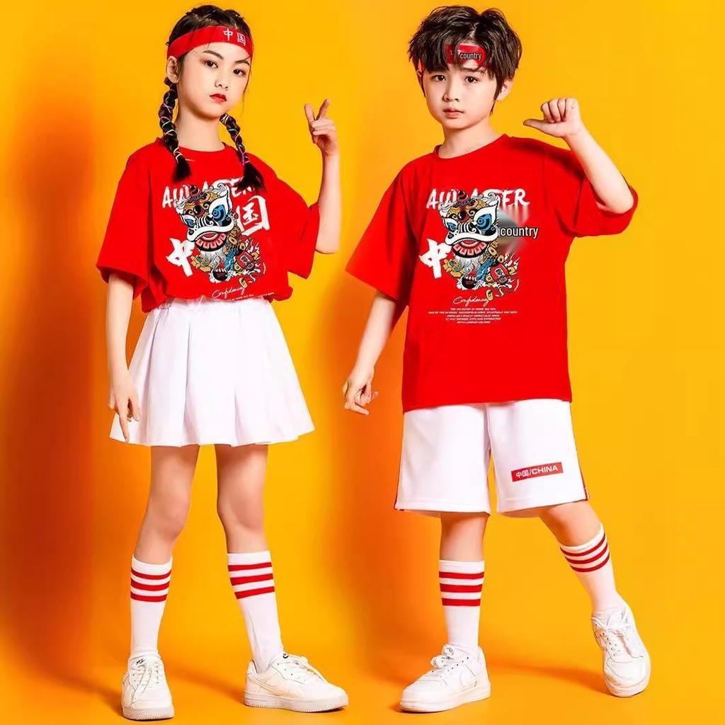 This performance and choir costume is designed for elementary students participating in sports and cheerleading events, particularly on Children's Day. Crafted from high-quality cotton, it ensures comfort and ease of movement. The design reflects traditional Chinese style, featuring intricate patterns and vibrant colors that capture the spirit of celebration. Ideal for creating a cohesive and spirited team appearance, this costume is perfect for young performers looking to shine on stage or field.