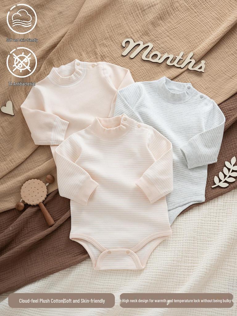 Warm Baby Bodysuit - Autumn/Winter Long Sleeve Velvet Romper with High Neck for Boys & Girls