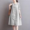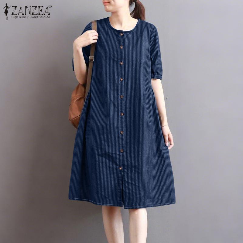 ZANZEA Women Casual Round Neck Short Sleeve Loose Stripe Dress
