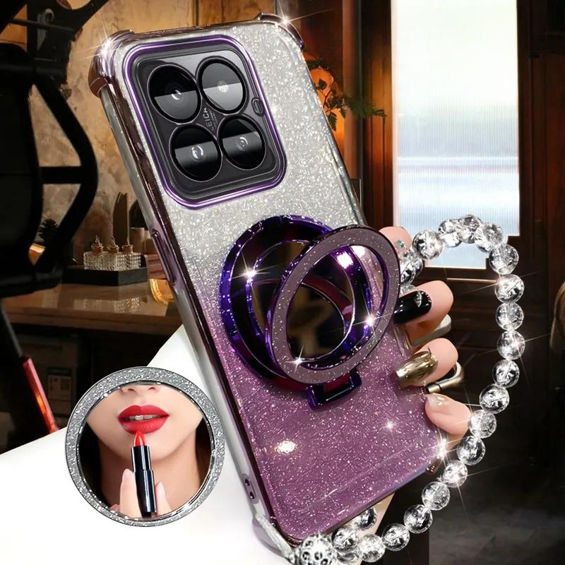 Shockproof GLITTER Plating Crystal Bracelet Magsafe Phone Holder Case For Xiaomi Mi 14 13 12 Pro Cover