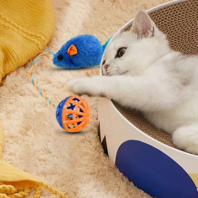 Interactive Cat Mouse Toy with Bells Simulation Plush Mouse Cat Chew Toy Fuzzy Cat Mice Bell Toy for Indoor Cats