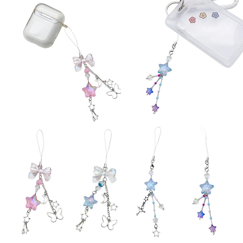 Sweet Bowknot Phone Charm Star Butterfly Pendant Keychain for Bag Accessory Phone Strap Lanyard Beaded Key Chain Jewelry