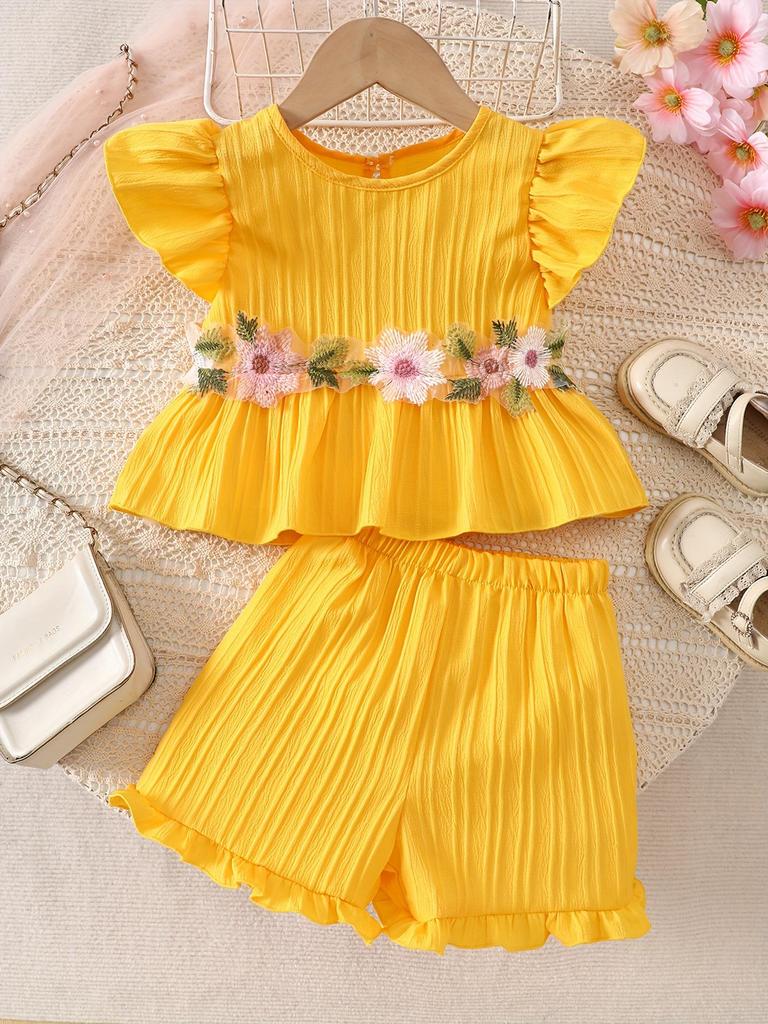 This stylish summer set for girls features a beautifully embroidered floral design on both the sleeveless top and matching shorts. Crafted from high-quality polyester, this outfit ensures comfort and breathability, perfect for warm weather. The European-American style blends fashion-forward design with classic charm, making it a delightful choice for any casual outing or playdate.